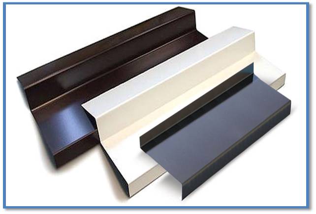 При изготовлении отлива используются несколько вариантов материалов, которые отличаются по внешнему виду и техническим характеристикам. Наиболее распространенные: